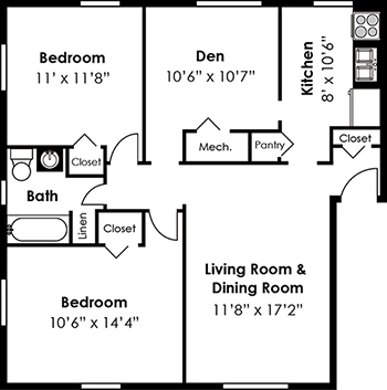 Apartment Model: 2 Bedroom 1 Bath DenFrom $1,2202 Bedroom, 1 Bath, 872 sq ftAvailable Now2 Bedroom 1 Bath Den - Floorplan 1 2 Bedroom 1 Bath Den - Floorplan 2 Apartment Unit: 3312-AApartment Model: 2 Bedroom 1 Bath Den$1,2302 Bedroom, 1 Bath, 872 sq ftAvailable NowApartment Unit: 3119-AApartment Model: 2 Bedroom 1 Bath Den$1,2252 Bedroom, 1 Bath, 872 sq ftAvailable December 13, 2025Apartment Unit: 3325-AApartment Model: 2 Bedroom 1 Bath Den$1,2202 Bedroom, 1 Bath, 872 sq ftAvailable December 24, 2025