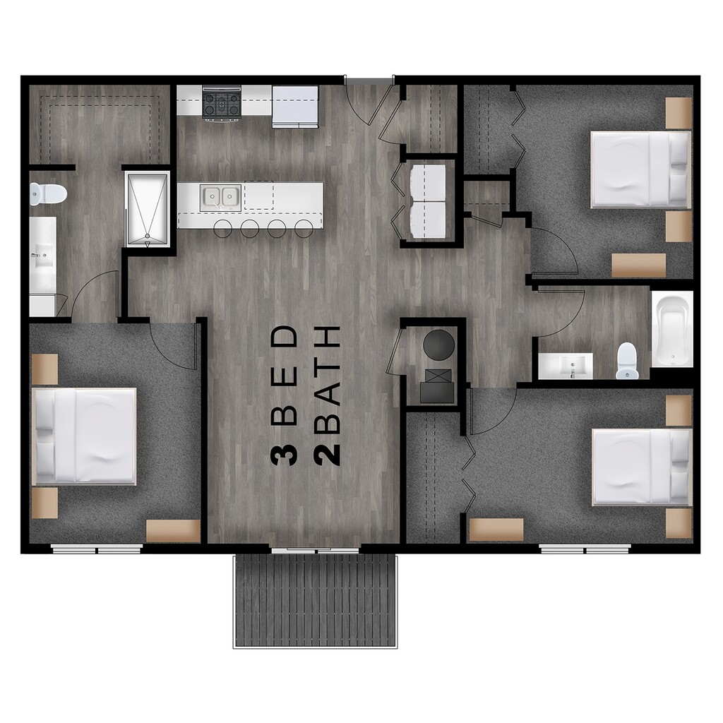 3 Bed, 2 Bath - Floorplan 1 Apartment Unit: 330Apartment Model: 3 Bed, 2 Bath$1,5993 Bedroom, 2 Bath, 1283 sq ftAvailable Now