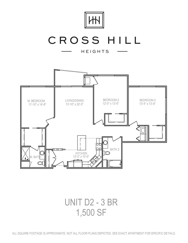 Studio to 3 Bedroom Apartments at Cross Hill Heights currently range from $1,495 to $1,995