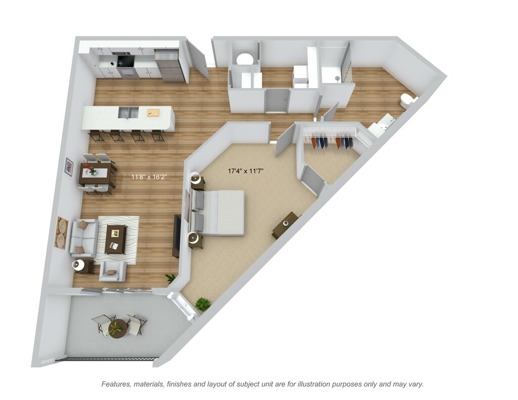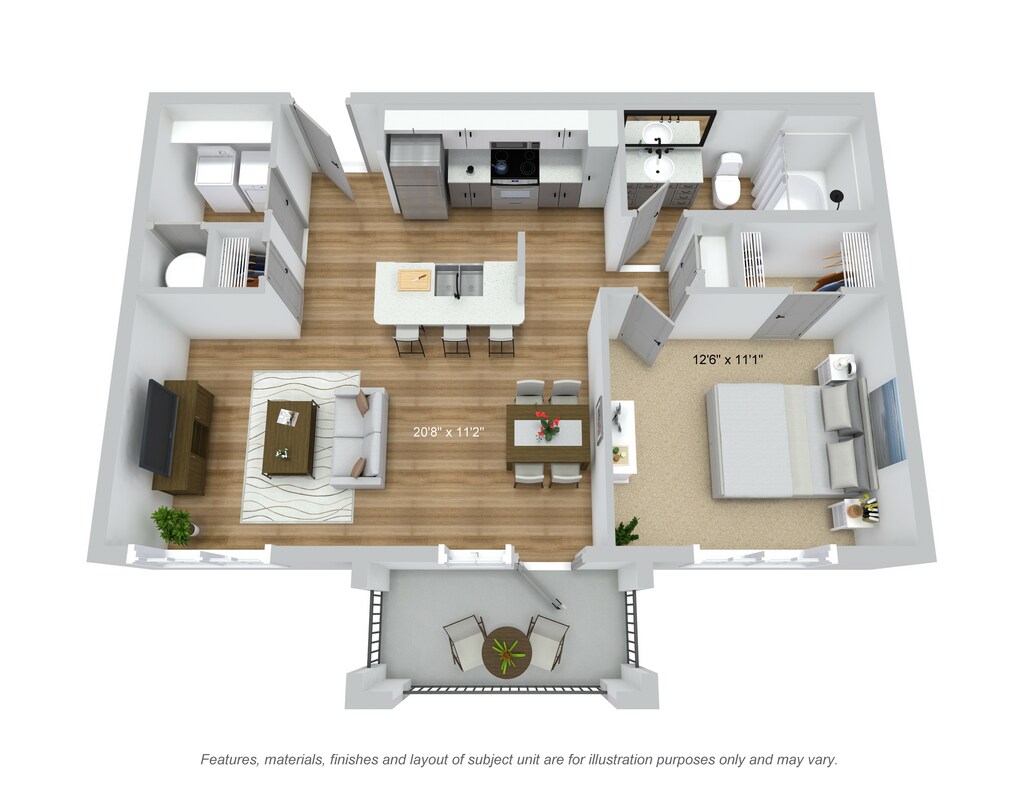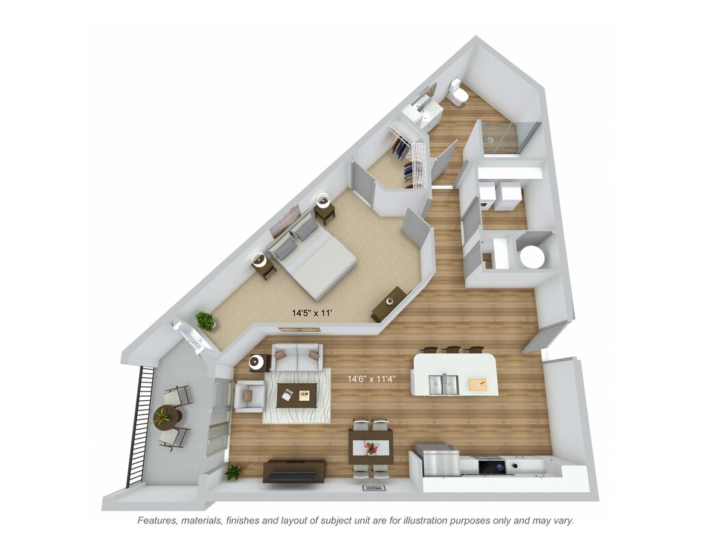 1 Bed, 1 Bath, 848 sq ftAvailable NowLargest 1 BedroomThis is the largest 1 Bedroom at this PropertyModel Gallery