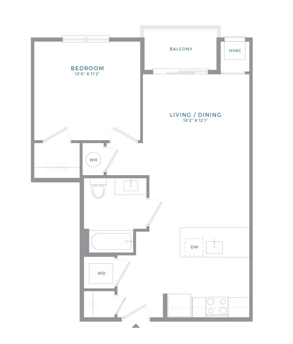 Studio, 1 Bath, 604 sq ftAvailable NowModel Gallery