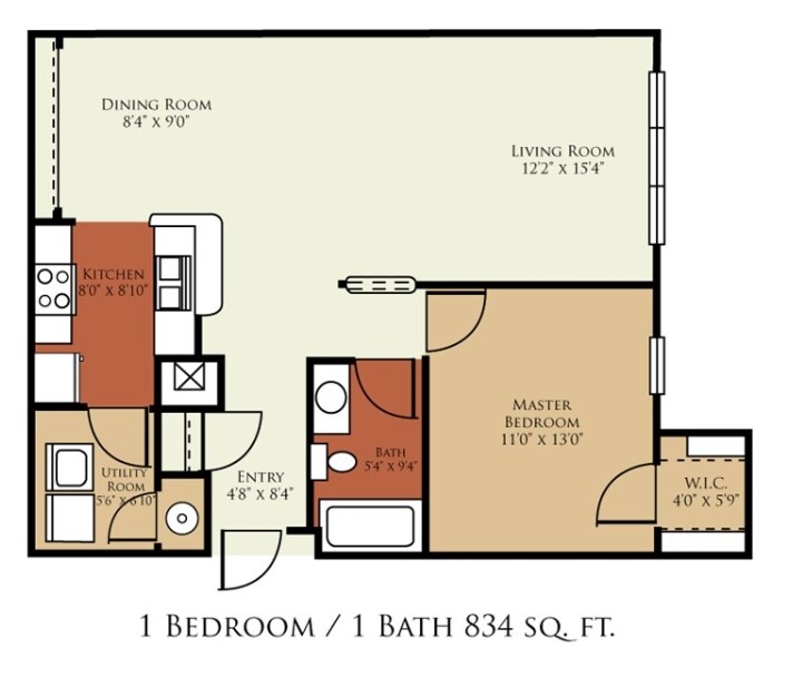 1 Bed, 1 Bath, 834 sq ftModel Gallery