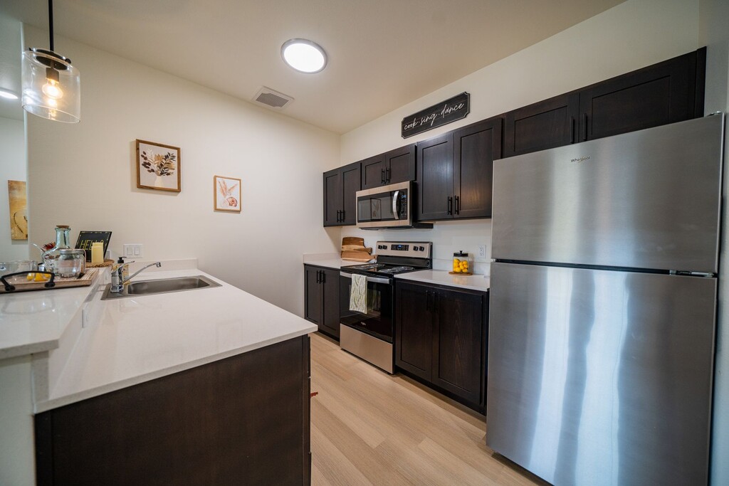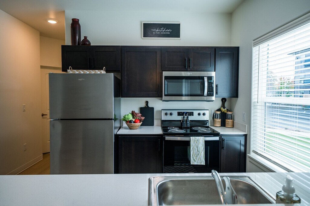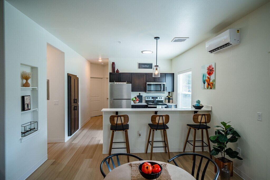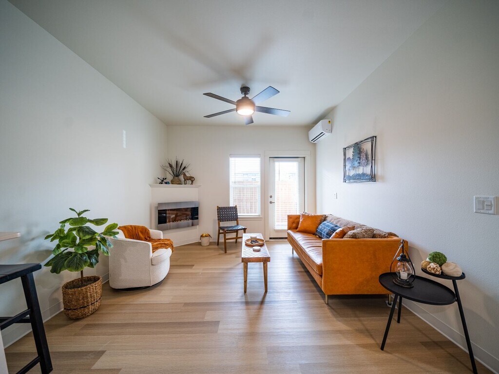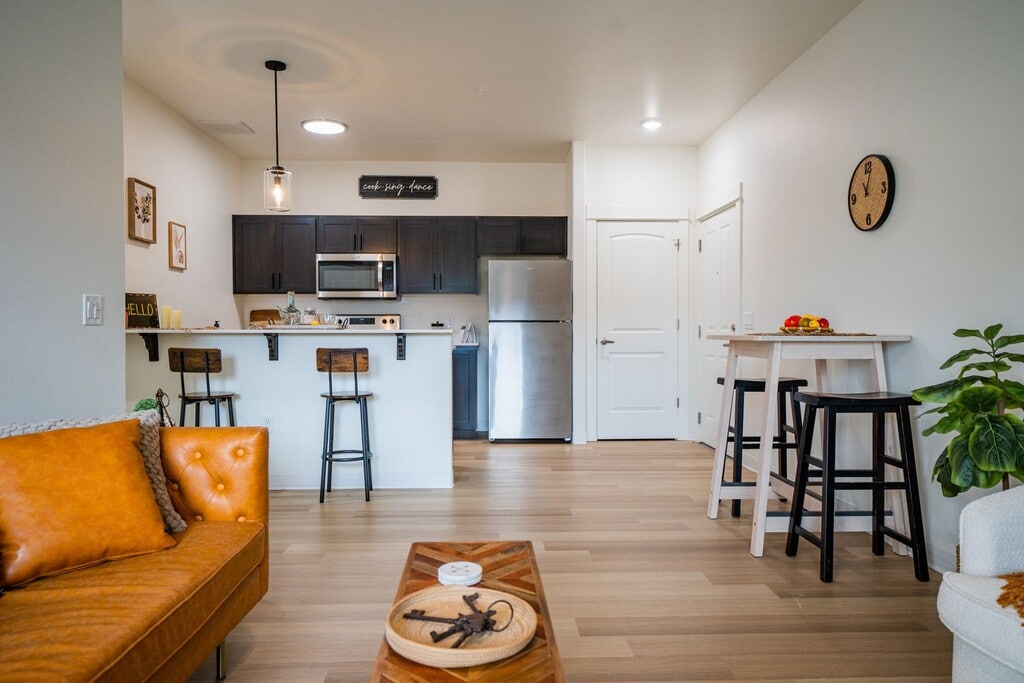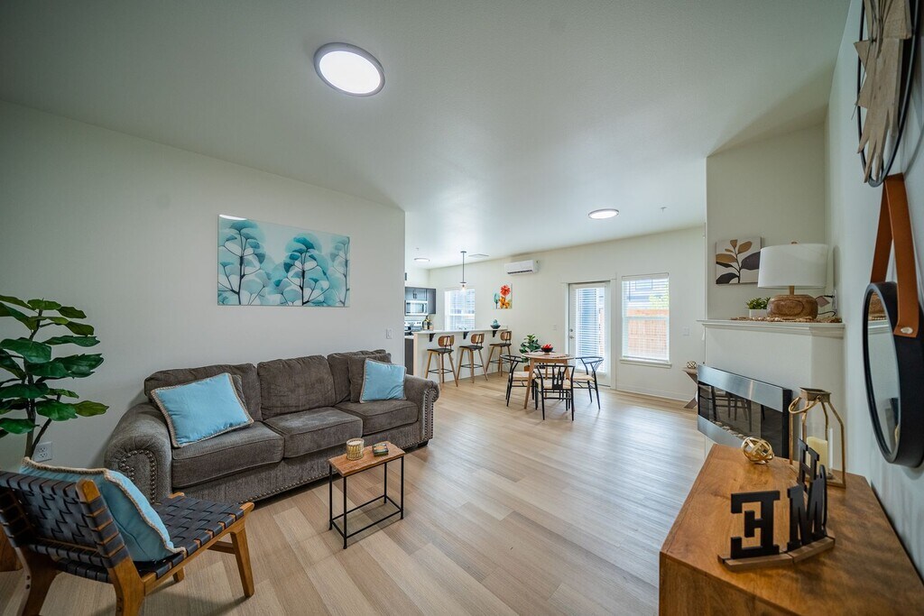 Experience thoughtful design, modern interiors, and exceptional value at Crossings at Center Street! Crossings at Center Street provides the most desired conveniences in addition to many extras with LED lighting, full size W/D, quality fixtures and finishes, ample closet space, and a cozy electric fireplace. Skip the gym membership with access to the 24-Hr Fitness room with interactive mirror and accessories. Visit with friends and neighbors in the outdoor lounge that boasts a fire pit and BBQ area. Furry friends are welcome, too, and dogs can enjoy the fenced run dog run. A gated entry adds security to your home and your vehicle parked in your reserved carport. Welcome home to a new level of living!