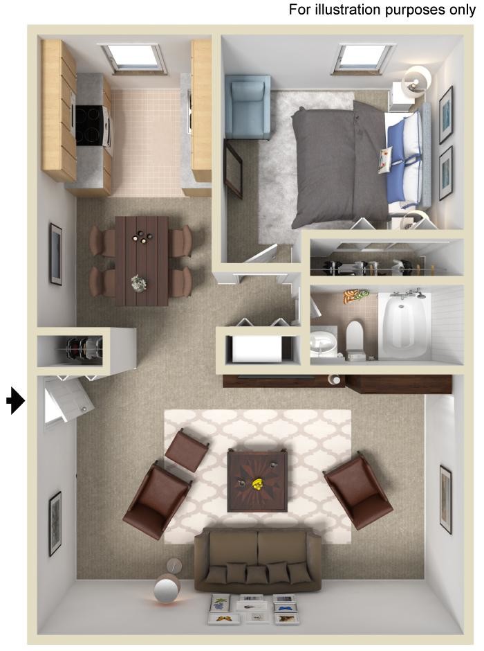 Apartment Model: A1 - 1Bed, 1BathFrom $9951 Bedroom, 1 Bath, 730 sq ftAvailable Now![]()