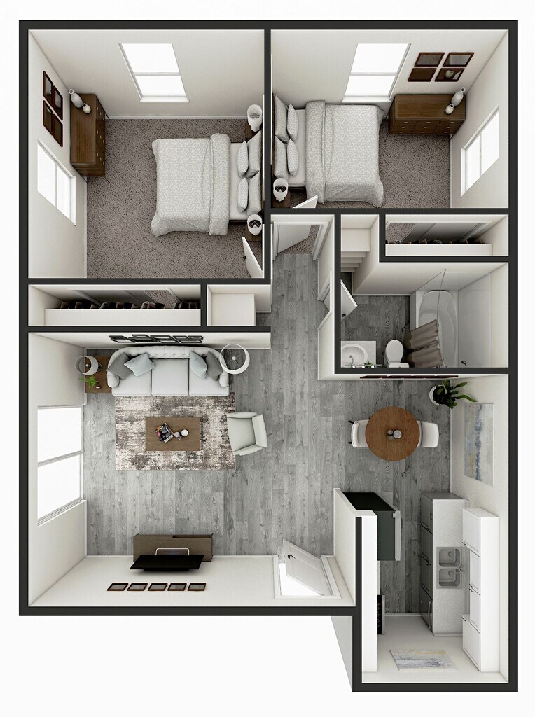 Apartment Model: 2 BD 1 BAFrom $7992 Bedroom, 1 Bath, 850 sq ftAvailable January 9, 2026FloorplansPhotos![]()