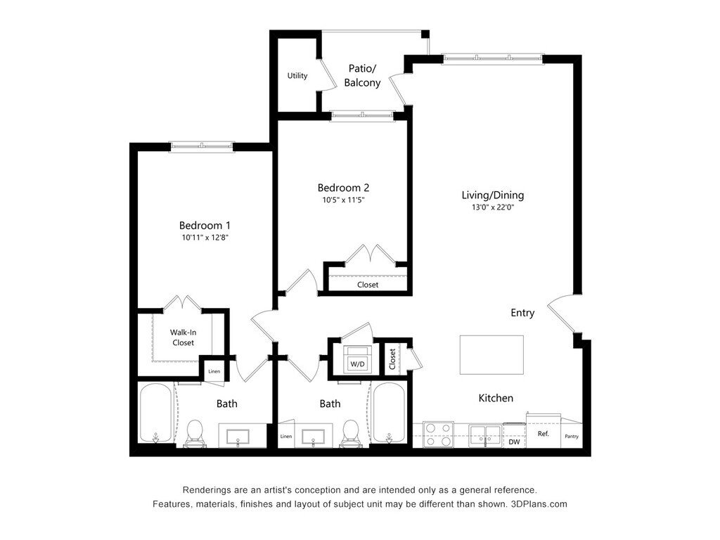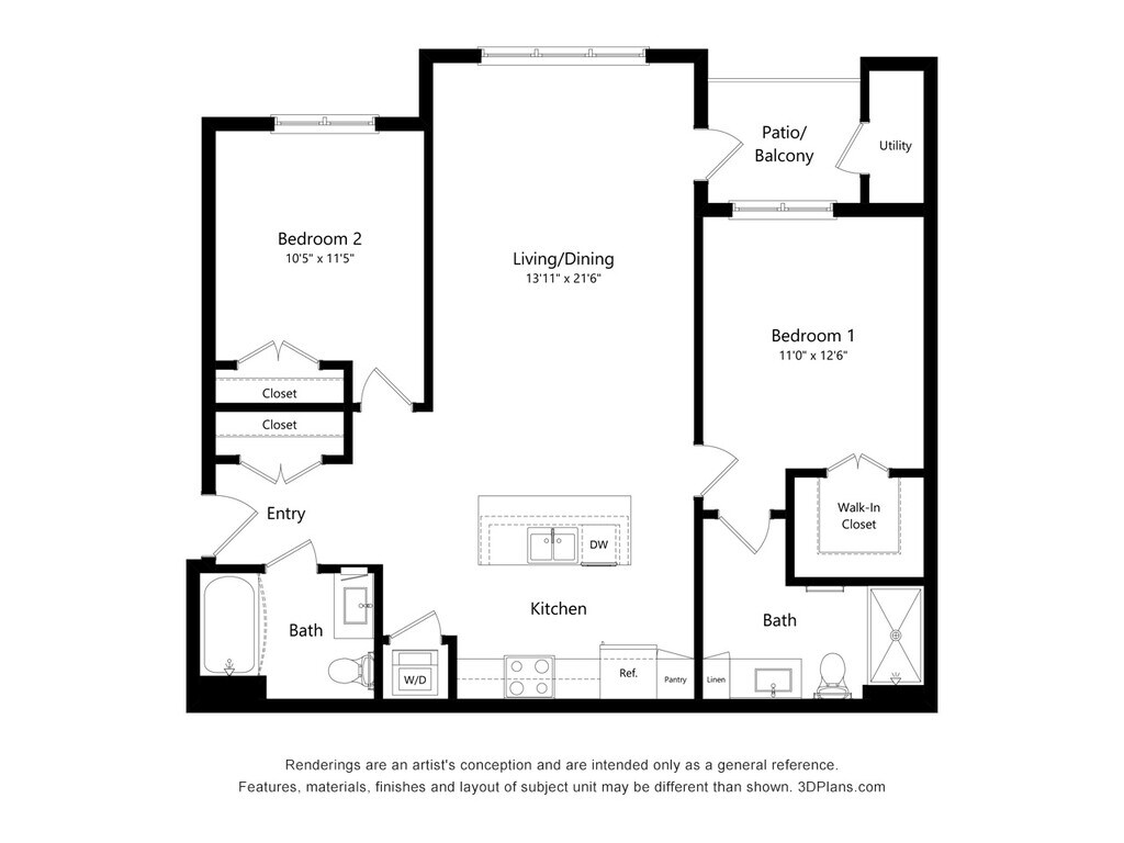 Apartment Model: One Bedroom - BFrom $9991 Bedroom, 1 Bath, 703 sq ftAvailable Now![]()