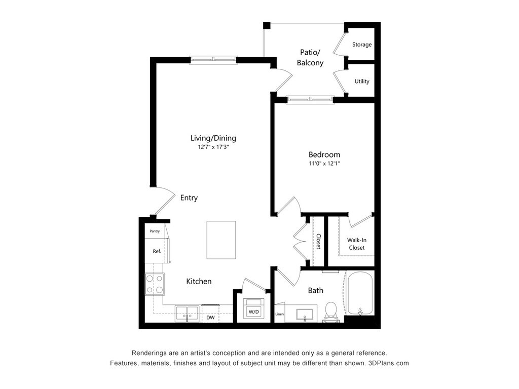 One Bedroom - A (Wheelchair Accessible) - Floorplan 3 ![]()