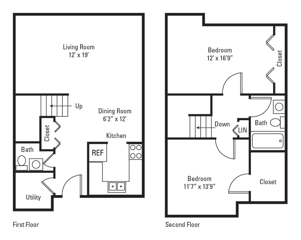 Two Bedroom 1.5 Bath Townhome - 1,145 sqft - Floorplan 2 ![]()