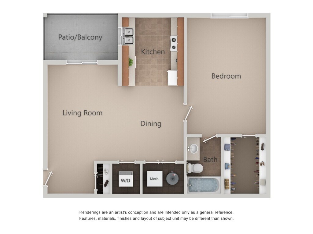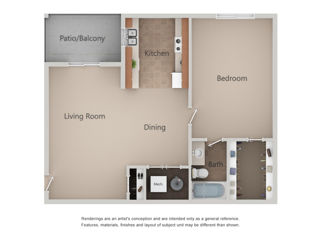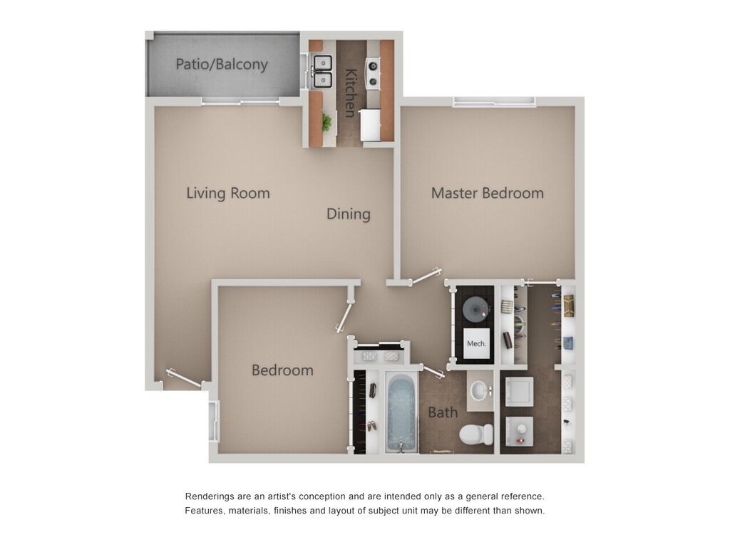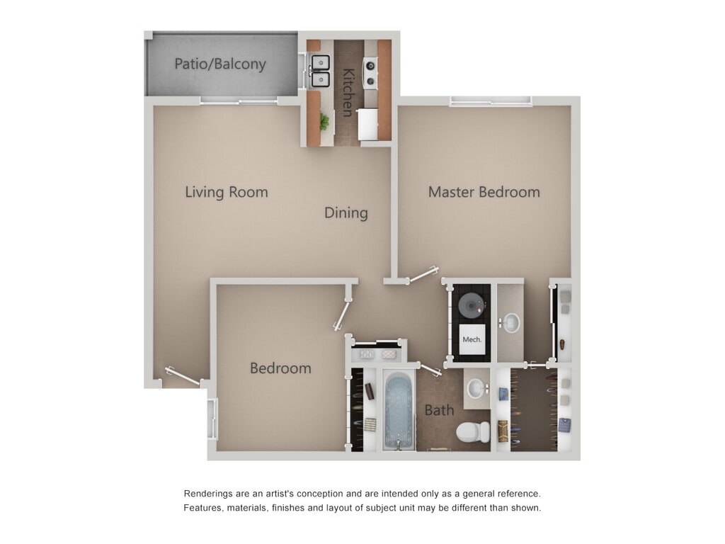 2 Beds, 1 Bath, 840 sq ftModel Gallery