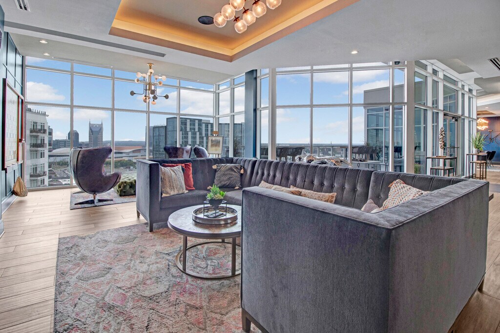 At Crossroads at the Gulch Apartments in Nashville, TN, we believe in luxury. Our signature, five-star resort-style service, exceptional amenities, and elegantly bold apartment finishes are designed to enhance your lifestyle. Enjoy a glass of wine while relaxing at the rooftop lounge with panoramic skyline views, or recharge in your brand-new apartment featuring a full suite of modern amenities.