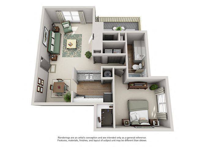 Apartment Model: 1A Renovation 2From $1,1151 Bedroom, 1 Bath, 685 sq ftAvailable Now![]()