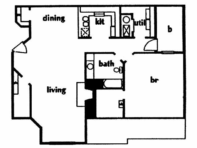 1BR 1BA (1000 SF) - Floorplan 1 ![]()