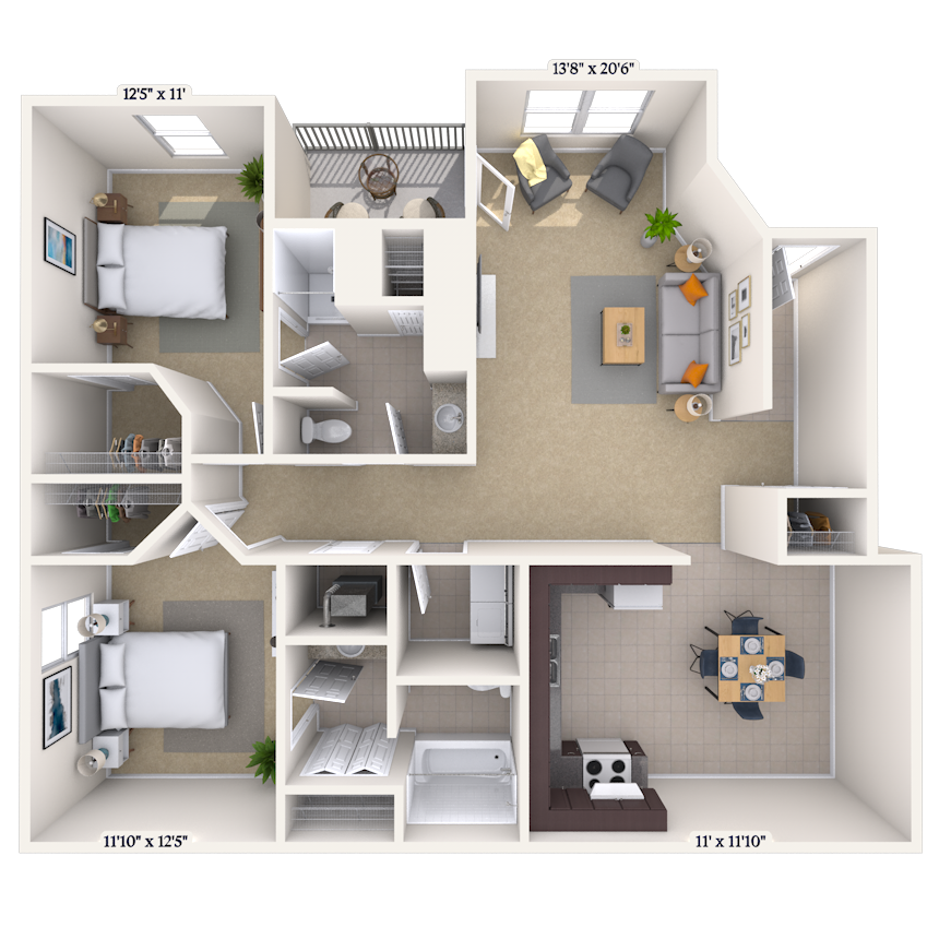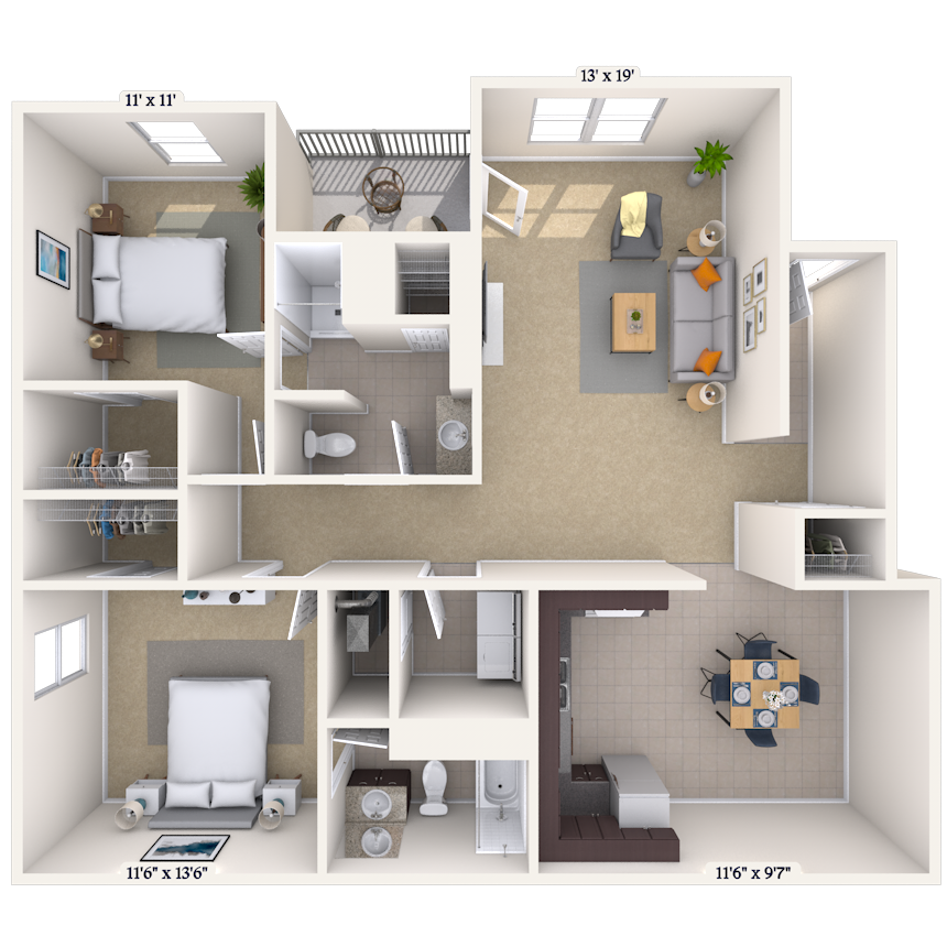 2 Beds, 2 Baths, 1300 sq ftAvailable NowModel Gallery