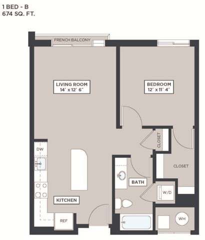 1 Bed, 1 Bath, 674 sq ftAvailable NowModel Gallery