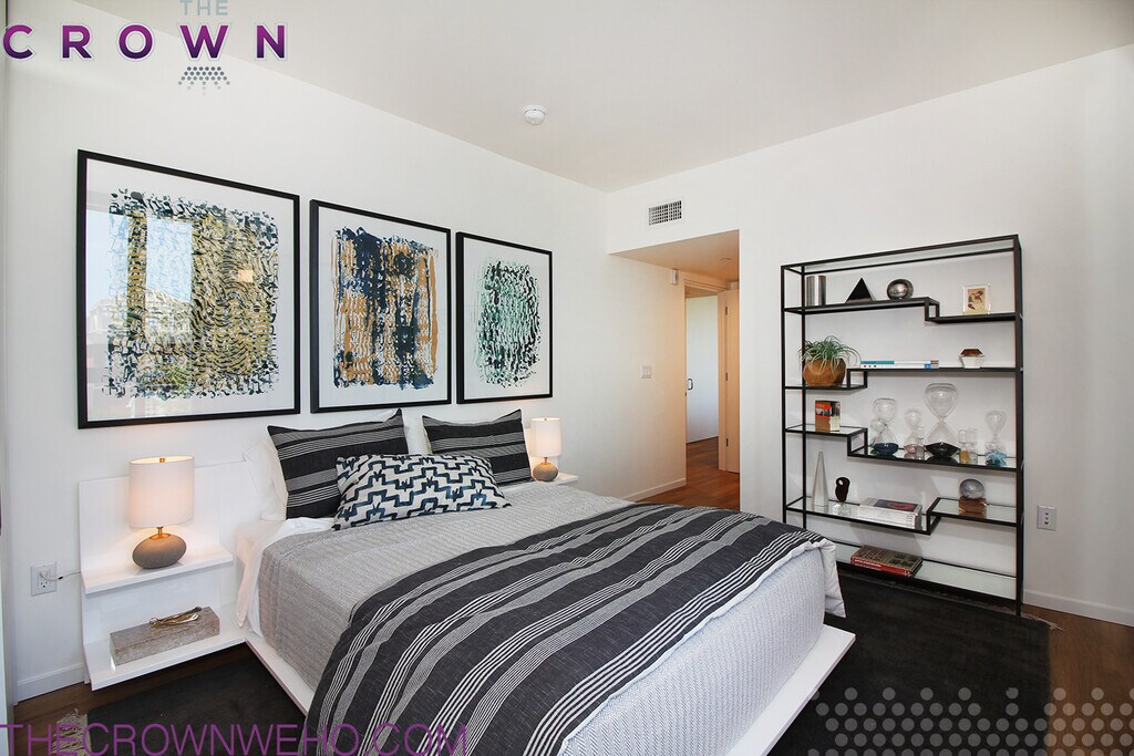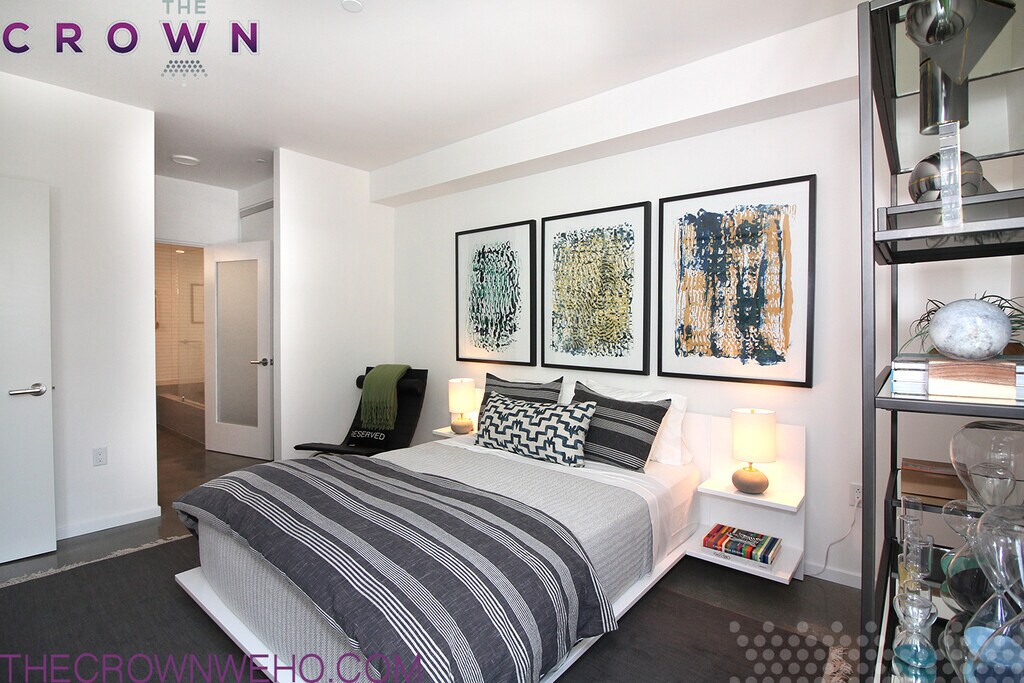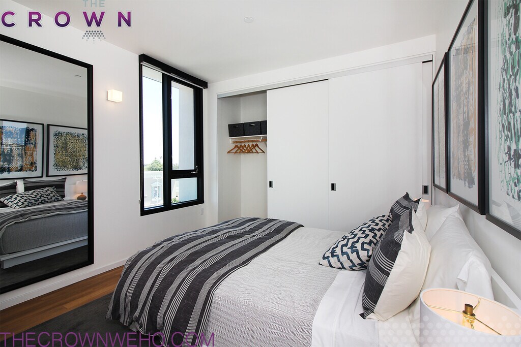 Please see below for Rent Special Details. Live a stately life at The Crown, West Hollywood’s newest luxury apartment building. Designed to perfection, The Crown offers residents a chance to be part of an urbane community where staying home is a privilege. Our luxury residences offer upscale finishes, unique Floor plans, beautifully landscaped outdoor spaces, and an expansive rooftop deck with 360 degree views of the City. Besides a vibrant nightlife and great energy, the neighborhoods and districts immediately surrounding Santa Monica Boulevard are walkable and quaint. Leave your car in your secured parking spot as you pop across the street to do your shopping at Gelson’s or walk to shops and local eateries. Contact us to learn more about living at the Crown, West Hollywood: one of the most coveted places to live and work in Southern California. **Note: Some advertised rents reflect the effective monthly rent price + 1 month of free rent on a one year lease. Please contact our leasing office for details. View 3D tour at FirstLight Property Management site! For Unit 217: 2ND MONTH FREE WITH 1 YEAR SIGNED LEASE! $500 LOOK AND LEASE BONUS! Advertised rent of $4,125.00 is the net effective rent for a 1-year lease @ $4,499 per month with 2nd month free rent. For Unit 406: 2ND MONTH FREE WITH 1 YEAR SIGNED LEASE! $500 LOOK AND LEASE BONUS! Advertised rent of $4,335 is the net effective rent for a 1-year lease @ $4,699 per month with 2nd month free rent. $500 bonus when prospect applies, approved, and signs lease within 72 hours of showing.