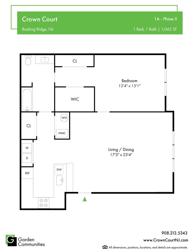 Apartment Model: $2.39/sq.ft. - 1A - Phase II$2,4991 Bedroom, 1 Bath, 1045 sq ftUnavailable![]()