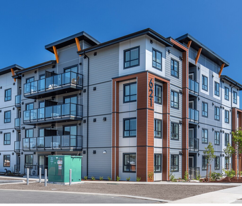 Crown Isle Boulevard is great location to enjoy the beautiful Comox Valley. This 56-apartment complex in East Courtenay offers beautiful contemporary living spaces and amazing proximity to a wide range of amenities. Everything you need is close at hand! All the apartments come with stainless steel appliances and an apartment-size stackable washer/dryer. Wide plank laminate flooring throughout, with luxury-grade vinyl tiles in the bathroom. Enjoy the balcony to sit out and take in the views. Many of the apartments offer views of the Beaufort mountain range or partial ocean views for a truly inspirational place to call home. These apartments all have A/C units for the hot days. With all amenities within walking distance, this area is ideal for people that love to walk, as well as trails that run down along Crown Isle Blv