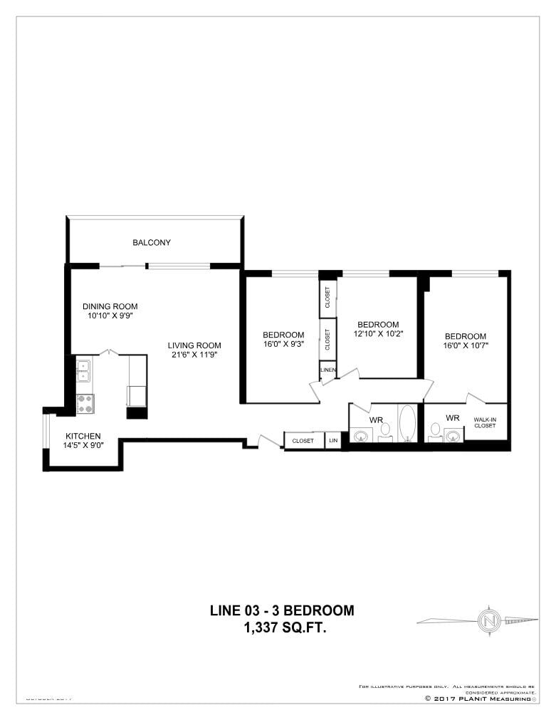 1 Bedroom - Floorplan 1 3 Bedrooms