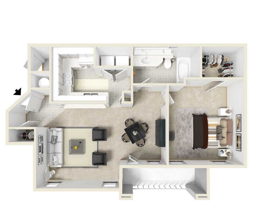 1 Bed, 1 Bath, 850 sq ftModel Gallery
