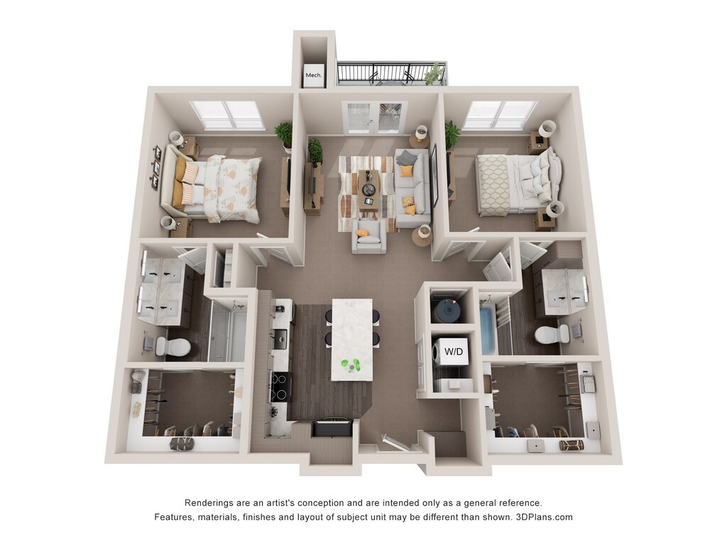 2 Beds, 2 Baths, 1285 sq ftAvailable NowLargest 2 BedroomThis is the largest 2 Bedroom at this PropertyModel Gallery