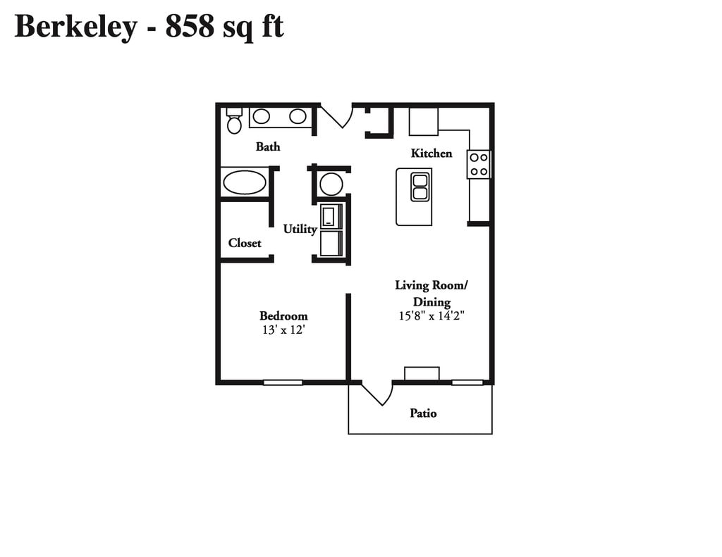 Apartment Model: Berkely WHCall For Rates1 Bedroom, 1 Bath, 858 sq ftUnavailableFloorplansPhotos![]()