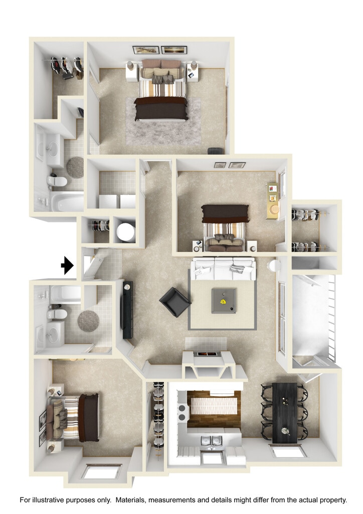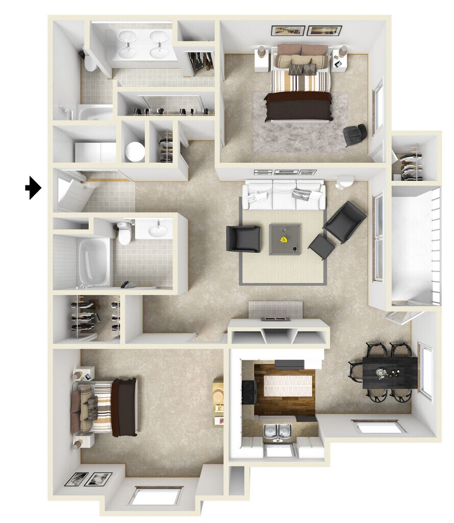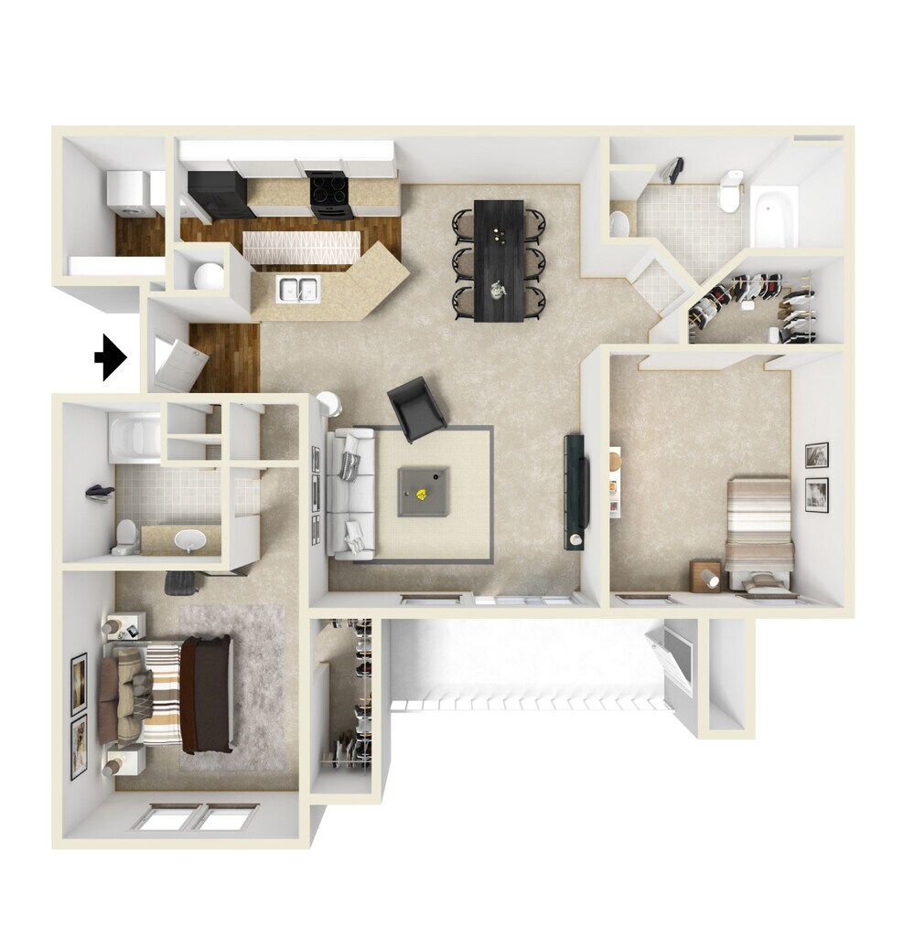 1 Bedroom to 3 Bedroom Apartments at Crowne at the Summit currently range from $994 to $1,775