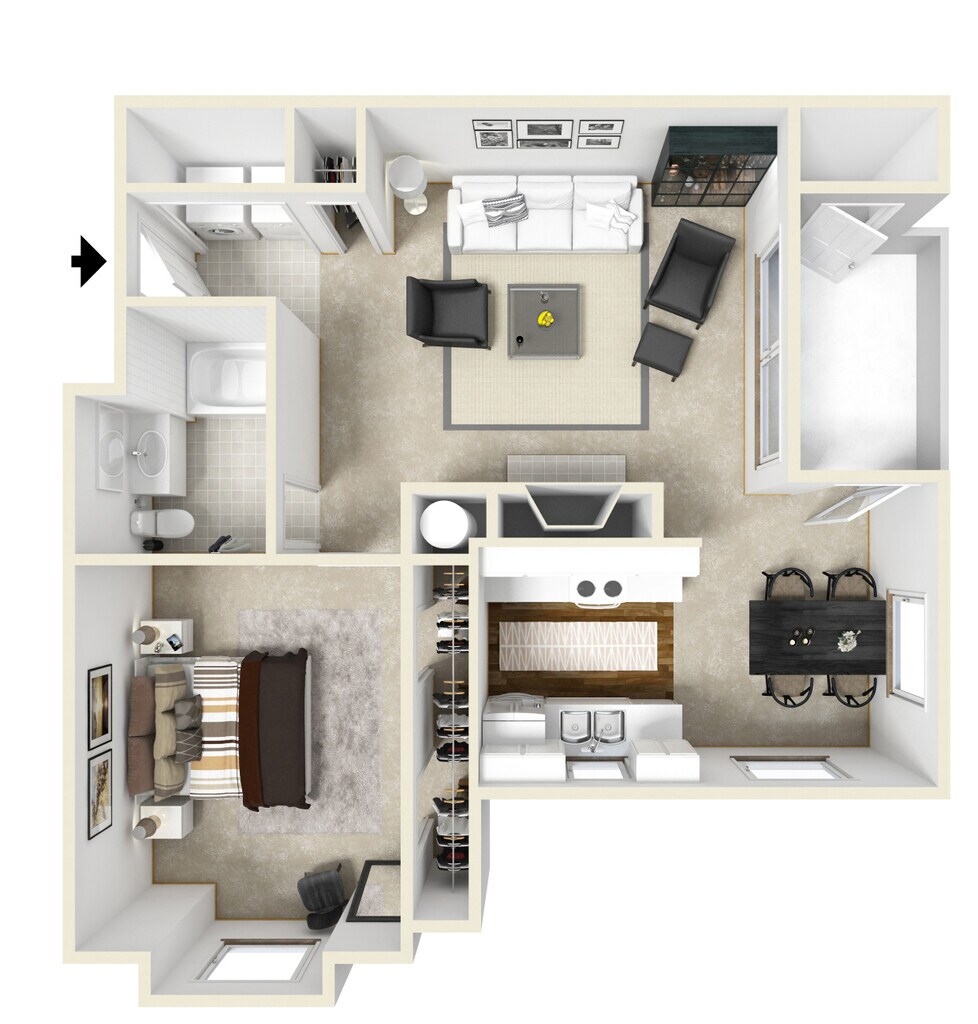 1 Bed, 1 Bath, 879 sq ftModel Gallery