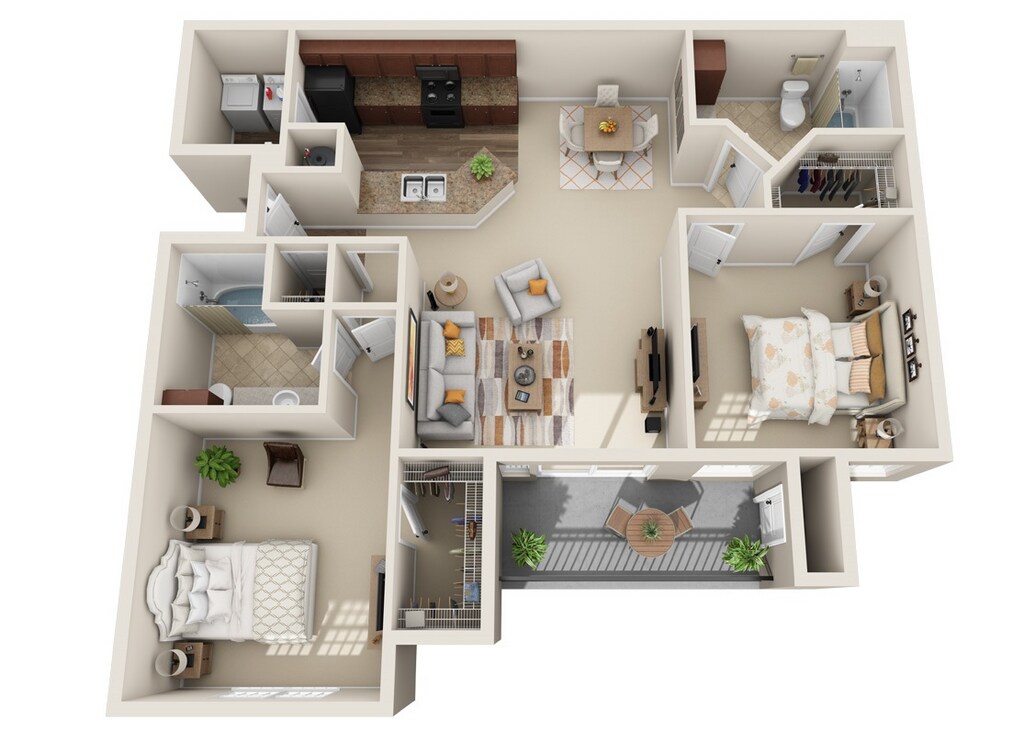 Apartment Model: 3 Regency3 Bedroom, 3 Bath, 1455 sq ftUnavailableFloorplansPhotos![]()