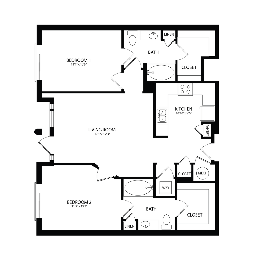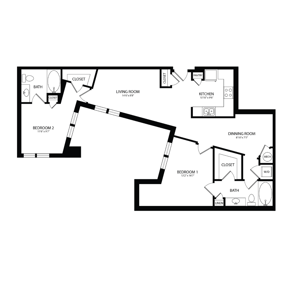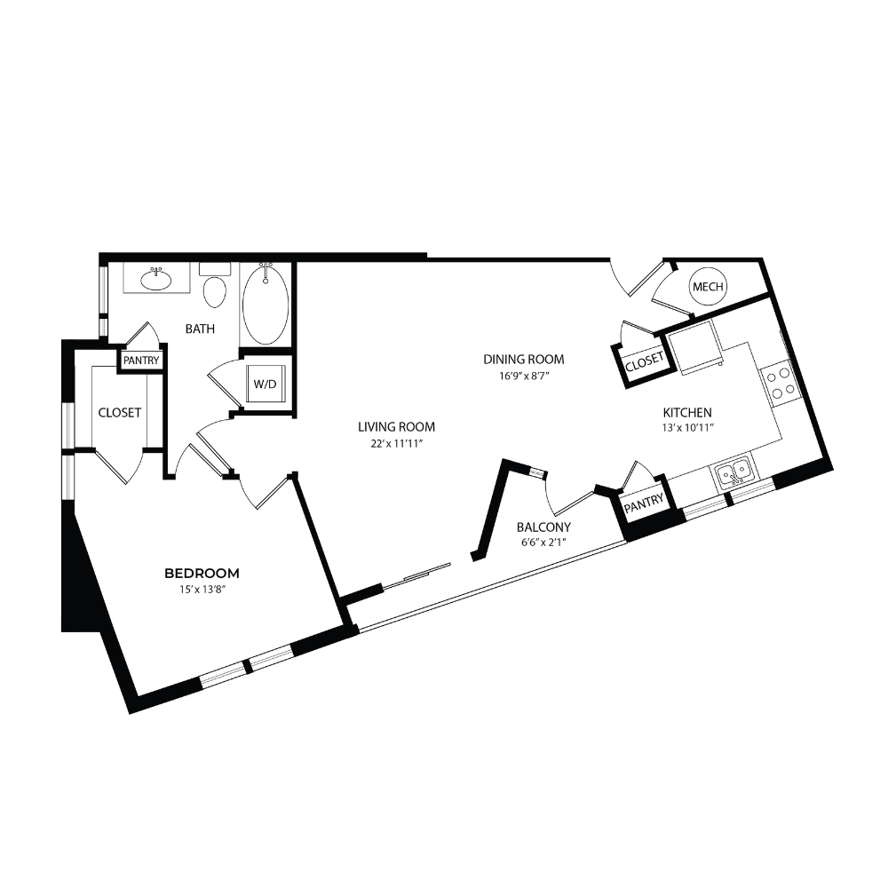 1 Bed, 1 Bath, 823 sq ftAvailable NowLargest 1 BedroomThis is the largest 1 Bedroom at this PropertyModel Gallery