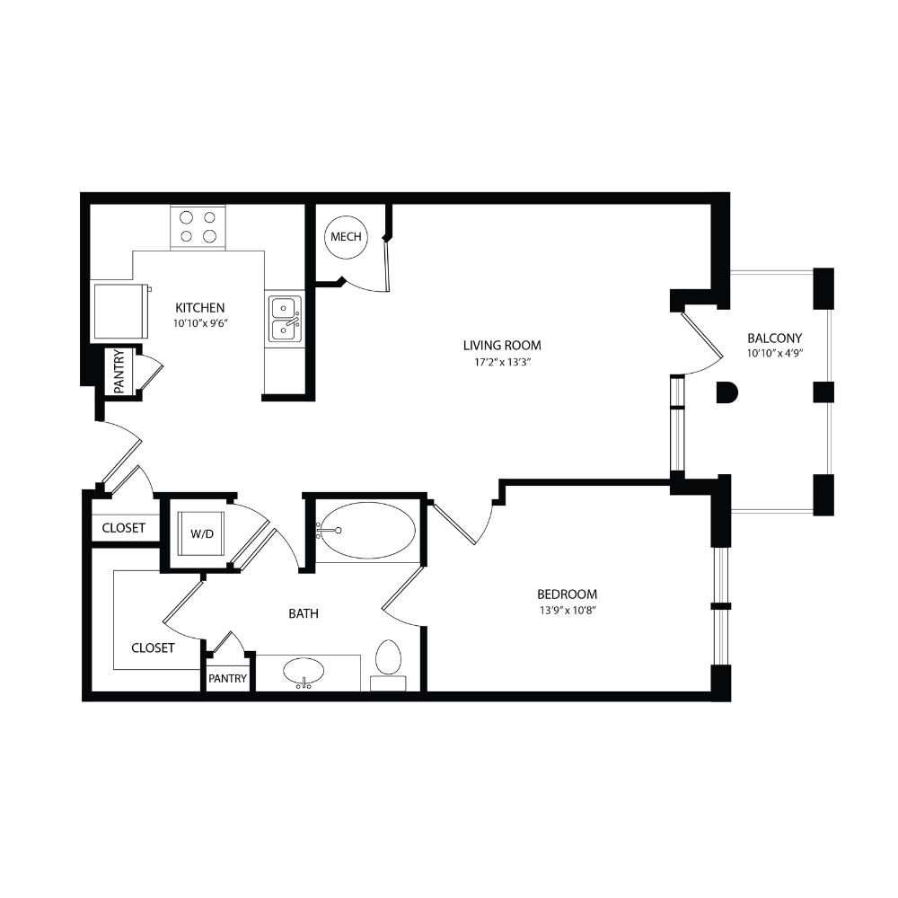 Apartment Model: 1 Bedroom, 1 Bath 675 SF A15AFrom $2,2881 Bedroom, 1 Bath, 675 sq ftAvailable NowFloor plans are artist's rendering. All dimensions are approximate. Actual product and specifications may vary in dimension or detail. Not all features are available in every rental home. Please see a representative for details.