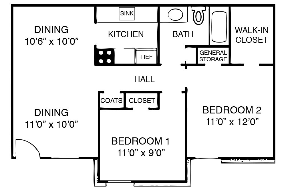 2 Beds, 1 Bath, 764 sq ftModel Gallery