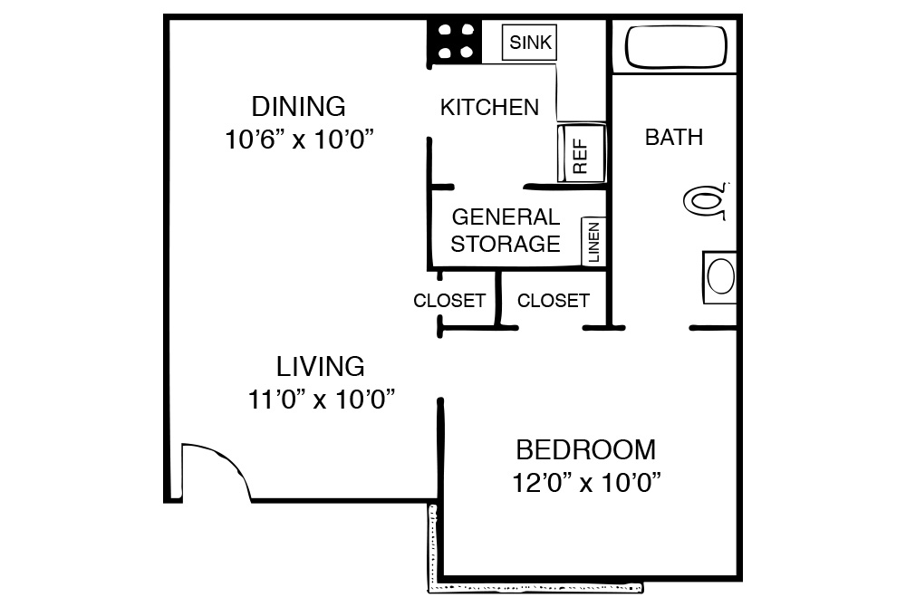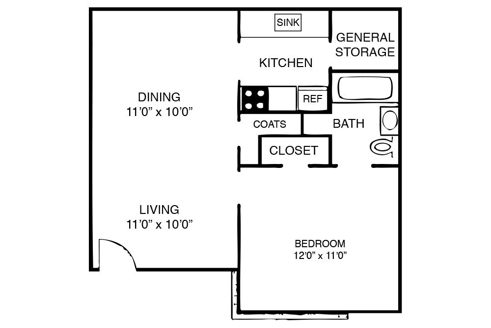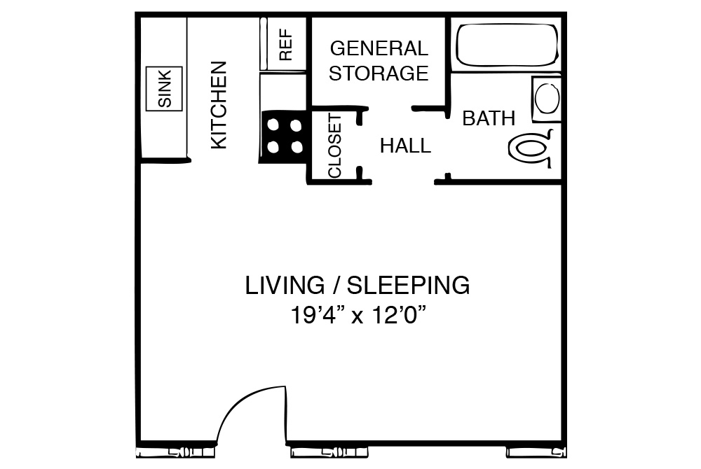 Apartment Model: AStudio, 1 Bath, 420 sq ftUnavailable![]()
