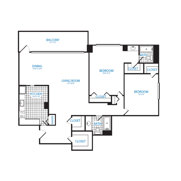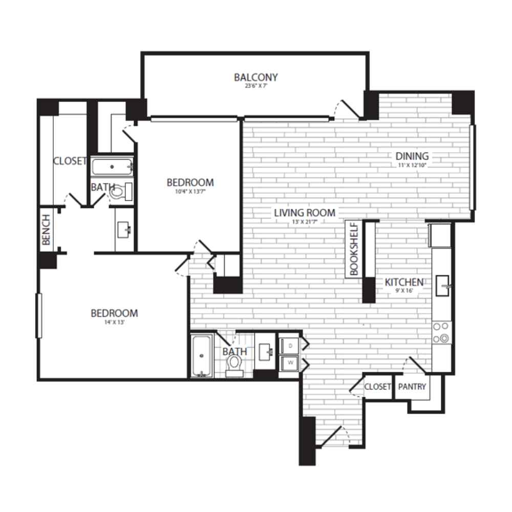 1 Bed, 1 Bath, 757 sq ftAvailable NowModel Gallery