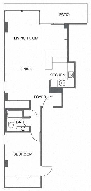 Renovated 1 Bed, 1 Bath Corner - Floorplan 1 Renovated 1 Bed, 1 Bath Corner