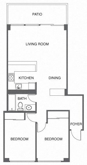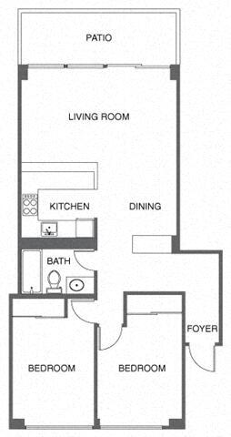 2 Bed, 1 Bath - Floorplan 1 2 Bed, 1 Bath