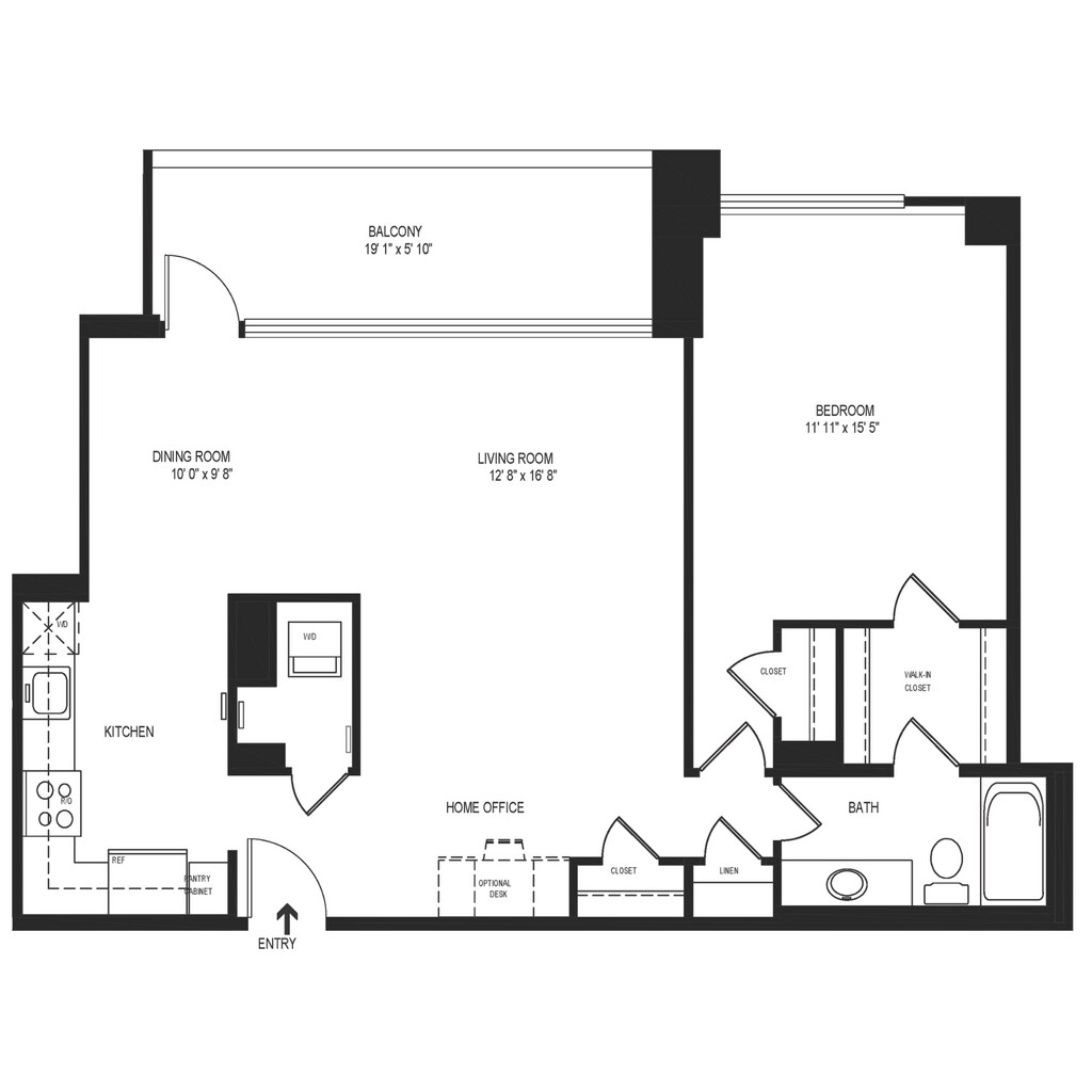 Apartment Model: Studio, 1 Bath 632 SF 01bFrom $1,950Studio, 1 Bath, 632 sq ftAvailable NowFloor plans are artist's rendering. All dimensions are approximate. Actual product and specifications may vary in dimension or detail. Not all features are available in every rental home. Please see a representative for details.