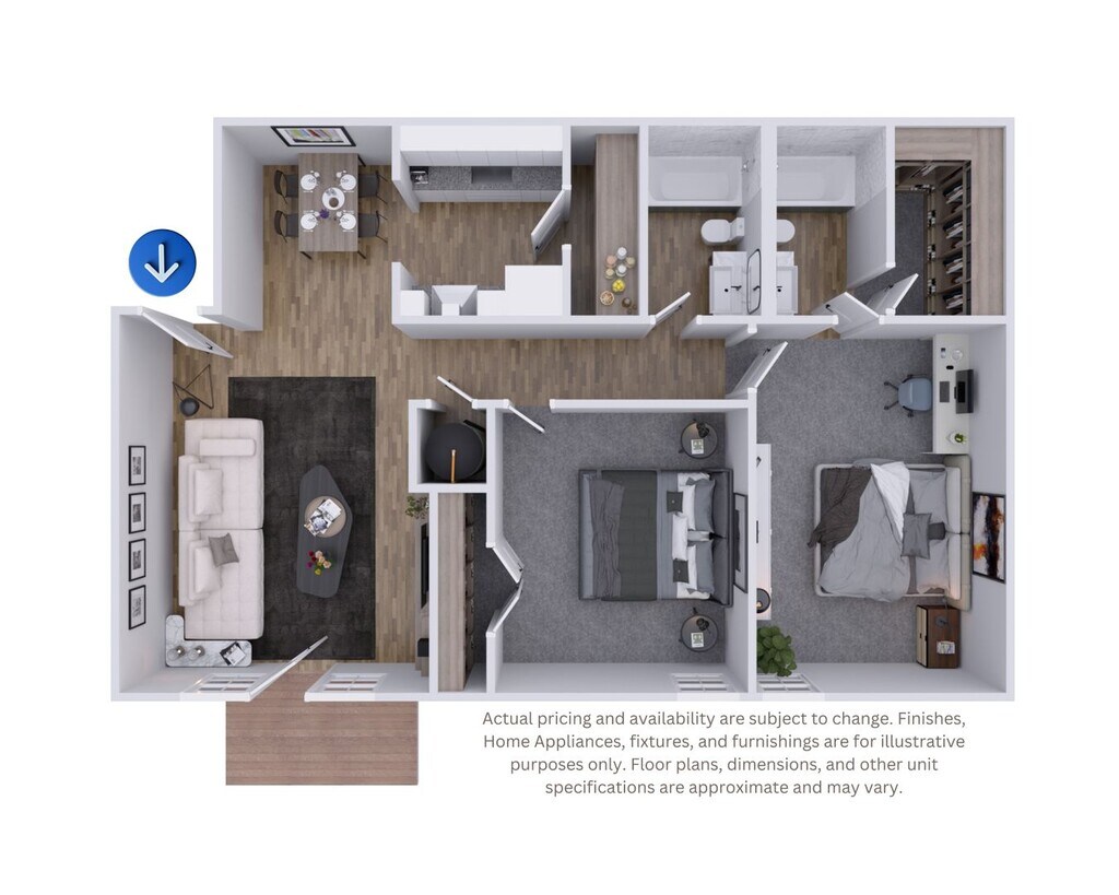 Hampton | 2B1B - Floorplan 11 Apartment Unit: 105FApartment Model: Hampton | 2B1B$1,5342 Bedroom, 1 Bath, 1024 sq ftAvailable NowOxford | 2B2B