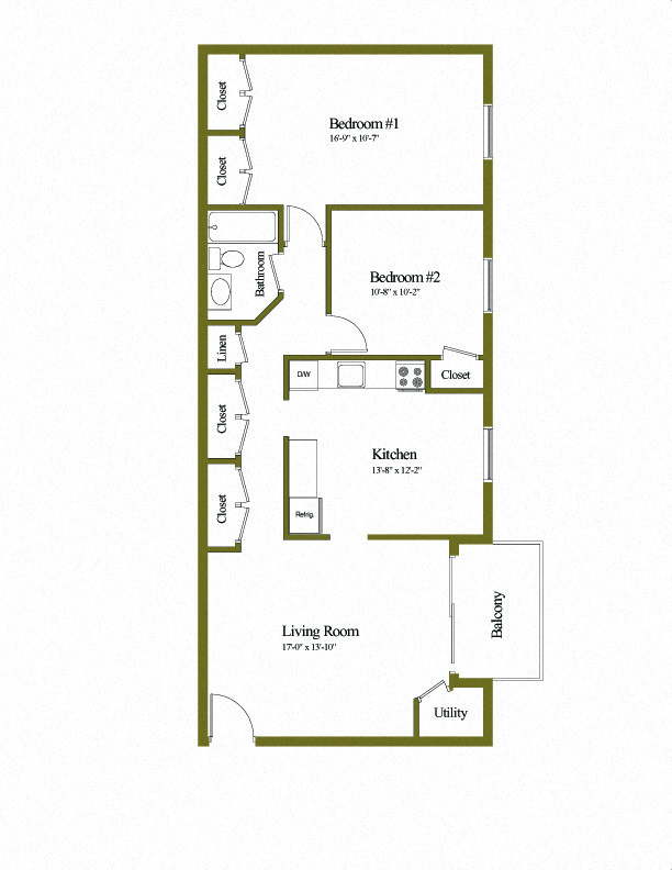 1 Bedroom 1 Bath - Floorplan 2 2 Bedrooms