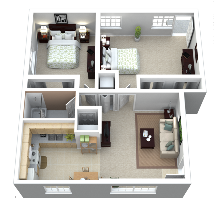 2 Beds, 1 Bath, 890 sq ftModel Gallery