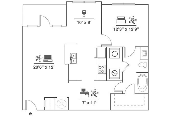1x1 A2 - Floorplan 1 2 Bedrooms