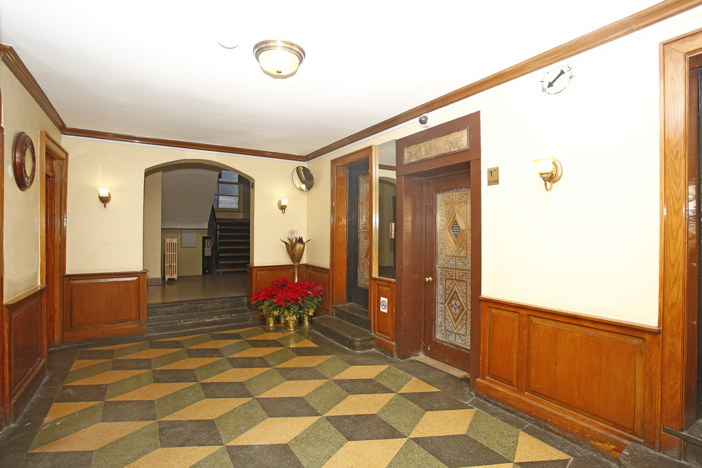 Located steps from Ft. Greene Park and a block from the C and G trains, this building is one of the most sought after places to live in Fort Greene. this building was built in 1928 and still retains some of its beautiful art deco charm with amazing tiled, cement floral geometric patterns and lovely polished brass door facial plates in the lobby. There is a wrought iron gate that conceals the mailroom and this is all the original iron work. Most apartments have framed walls and arched inner doorways and at least one cedar closet exists. The hardwood floors are from the original construction. The apartments are spacious, with separate kitchen and living areas. The building also has laundry and accepts packages Monday through Saturday.