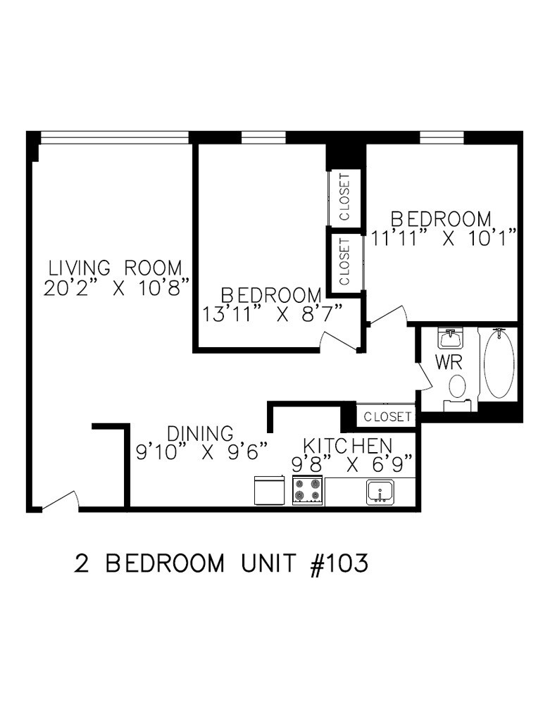 2 Beds, 1 Bath, 840 sq ftAvailable NowModel Gallery