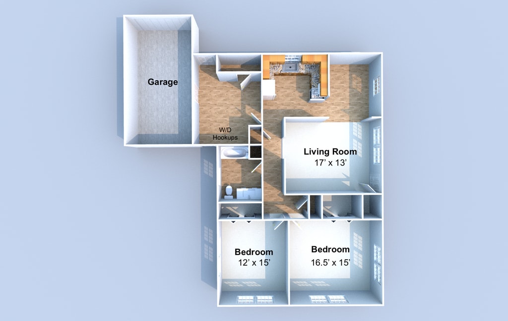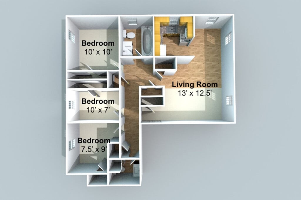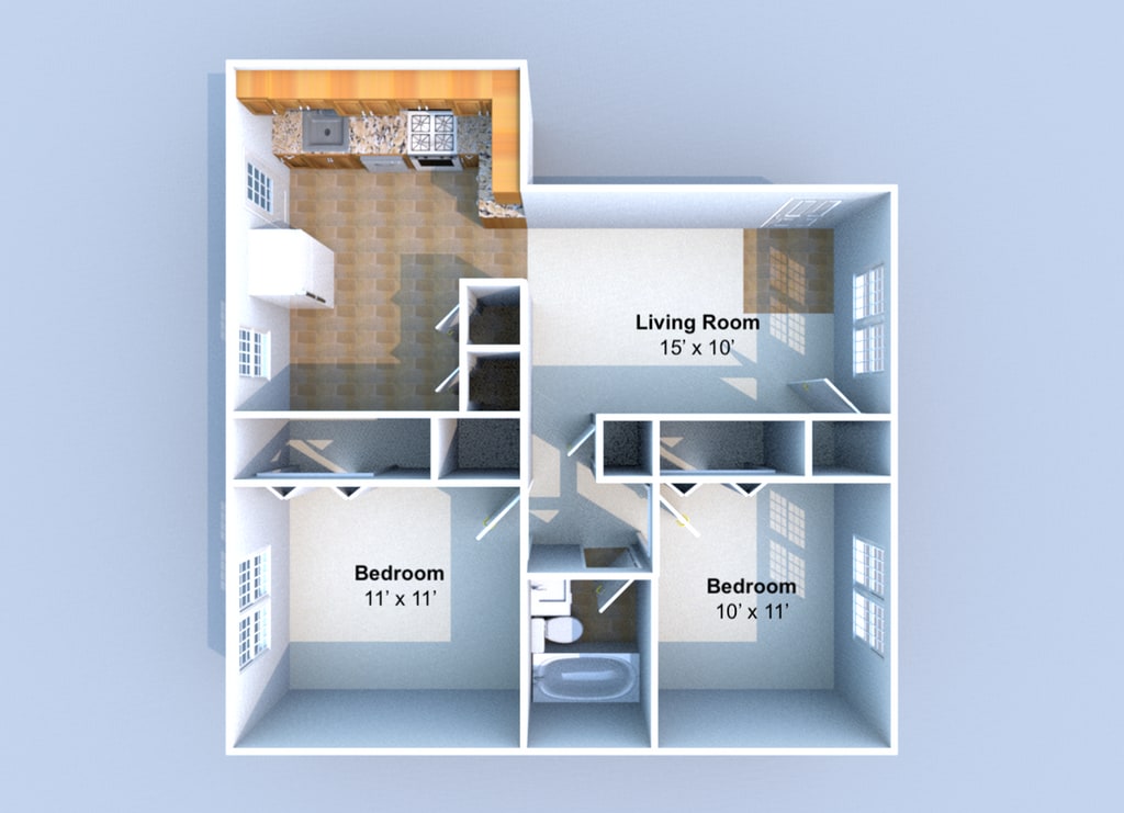 3 Beds, 2 Baths, 962 sq ftModel Gallery