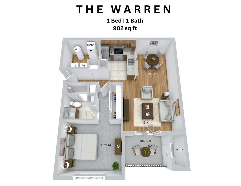 Apartment Model: WarrenFrom $1,1611 Bedroom, 1 Bath, 902 sq ftUnavailable![]()