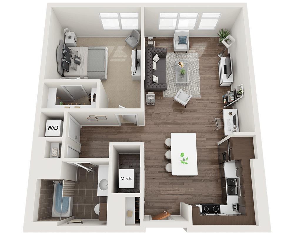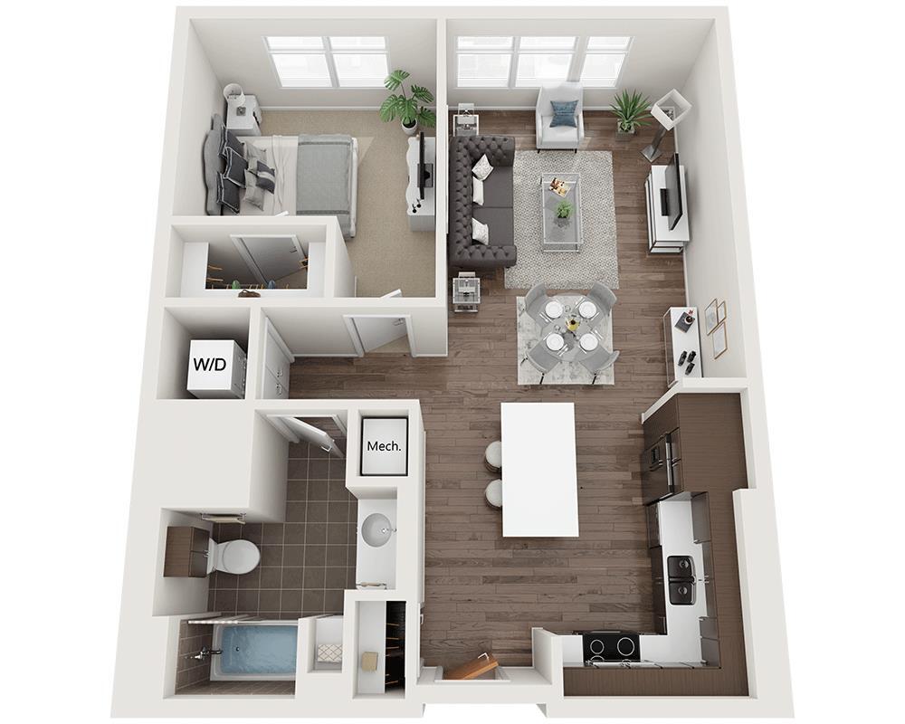 Apartment Model: One Bedroom A1DFrom $2,4671 Bedroom, 1 Bath, 774 sq ftAvailable NowFloor plans are artist's rendering. All dimensions are approximate. Actual product and specifications may vary in dimension or detail. Not all features are available in every rental home. Please see a representative for details.