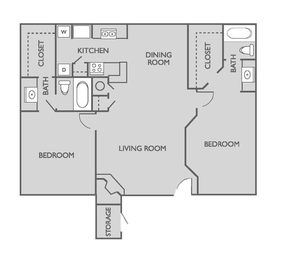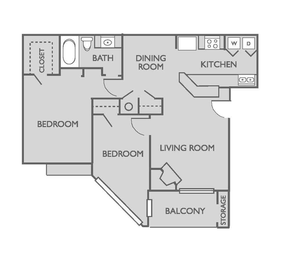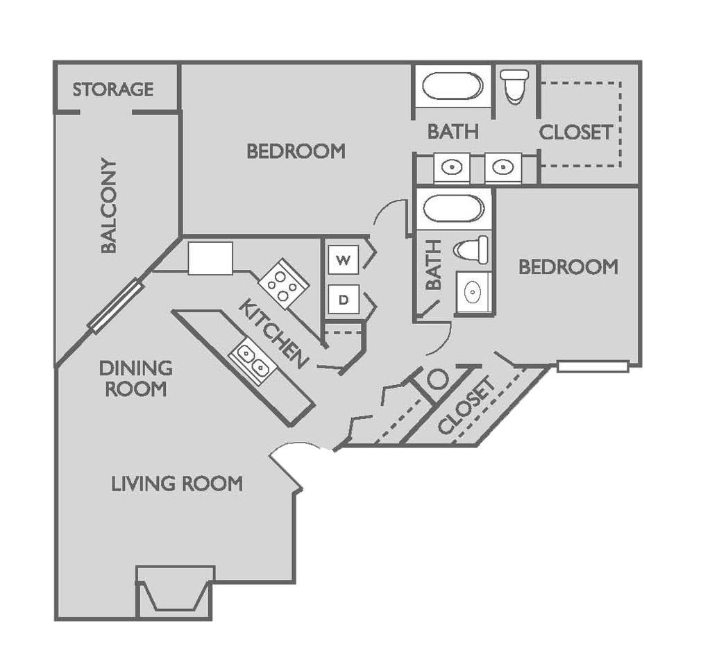 2 Beds, 2 Baths, 1057 sq ftLargest 2 BedroomThis is the largest 2 Bedroom at this PropertyModel Gallery