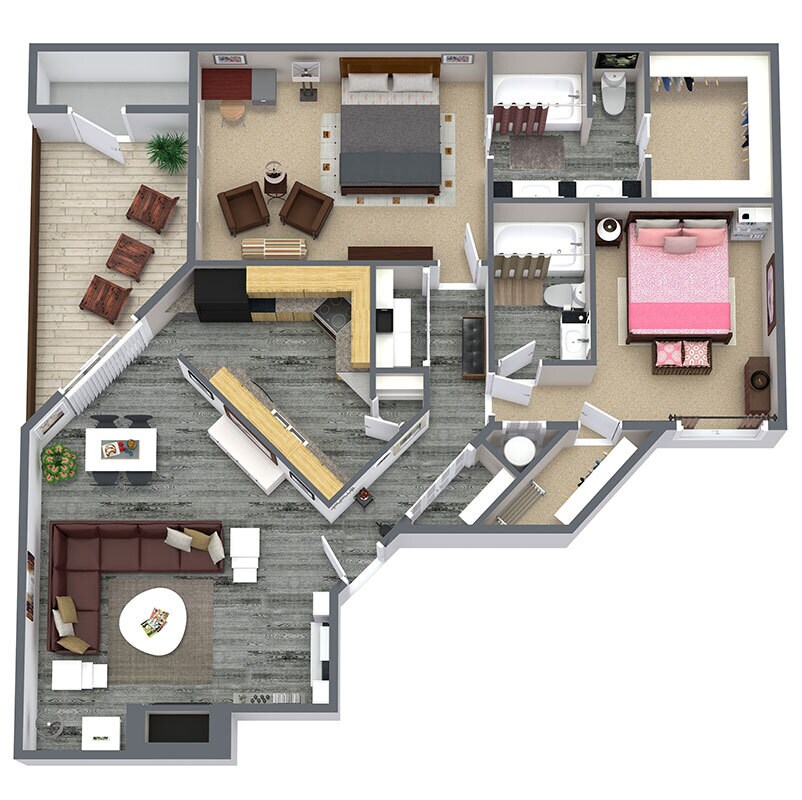 Apartment Model: 2 BedsFrom $1,2302 Bedroom, 2 Bath, 1057 sq ftUnavailable![]()