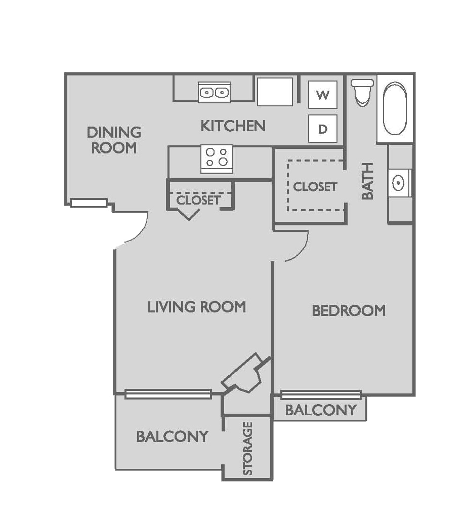 1 Bed, 1 Bath, 602 sq ftModel Gallery