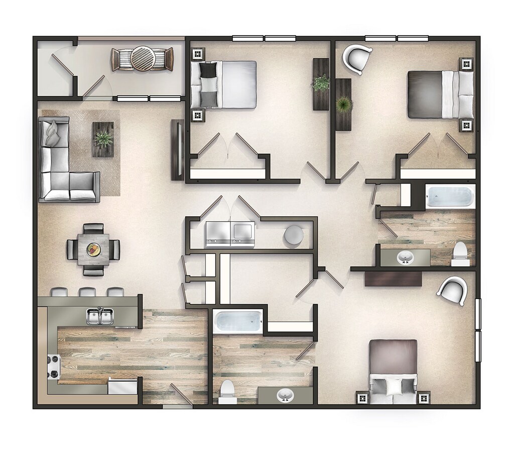 Apartment Model: The MeadowsFrom $1,9853 Bedroom, 2 Bath, 1295 sq ftUnavailableFloorplansPhotos![]()