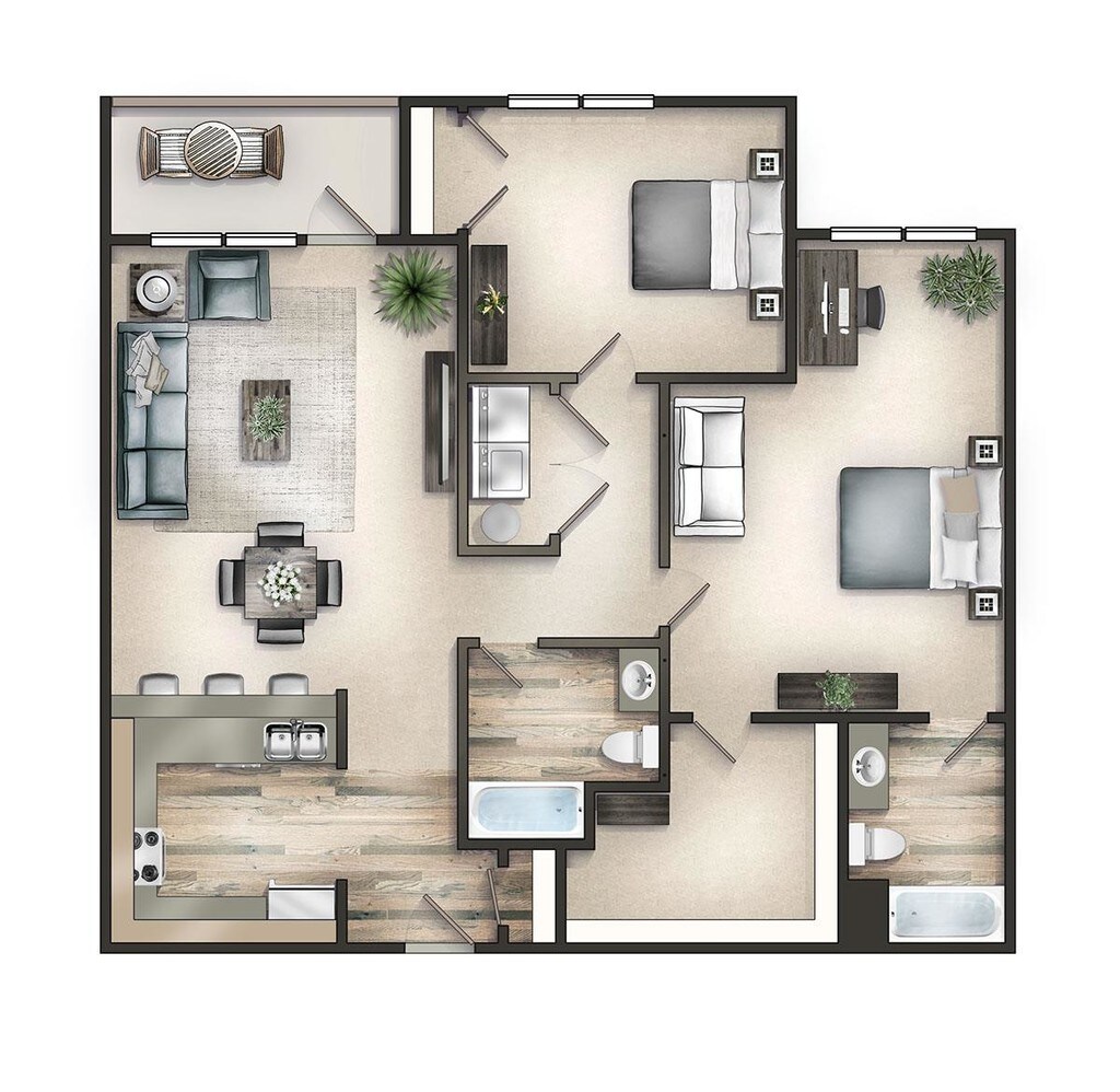2 Beds, 2 Baths, 1067 sq ftAvailable NowModel Gallery